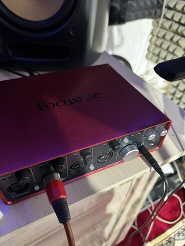 - Встроенные преампы Focusrite с чистым звучанием и большим запасом по уровню.