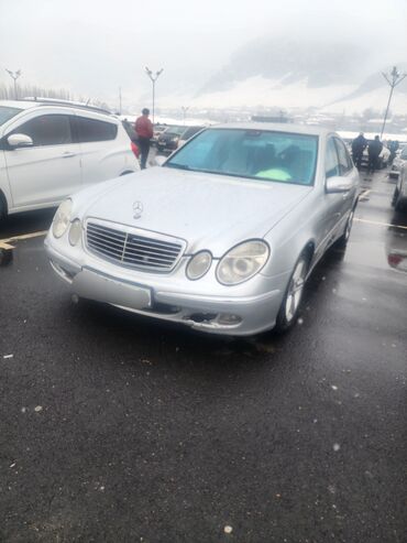 Mercedes-Benz E‑Class (W211) седан, серебристый металлик.