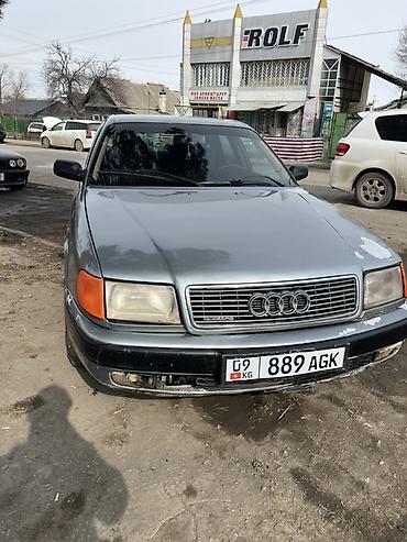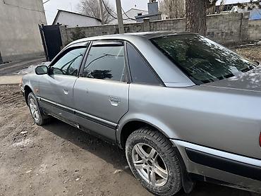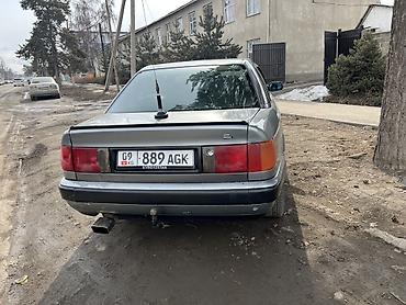 Audi 100 C4 седан, левый руль, полный привод quattro. Серый металлик, тонированные стекла. Заводская решетка радиатора с шильдиком quattro, легкосплавные диски, зимняя резина. Кузов — 4 двери, просторный салон. Задняя оптика красная цельнаая багажника. Выпуск с насадкой, задний фаркоп. Передний бампер с местами под противотуманные фары, омыватели фар. Боковые повторители поворота на крыльях, молдинги по периметру кузова.
