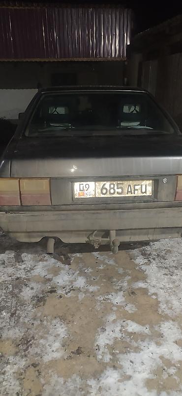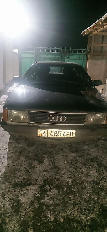 Audi 100 C3, седан, черный цвет. Атмосферный бензиновый двигатель, механическая коробка передач. Привод передний. Кузов 4-дверный, просторный салон с чехлами на сиденьях. На руле фирменная эмблема Audi, панель приборов со спидометром до 220 км/ч, центральная консоль с блоком кнопок и магнитолой.