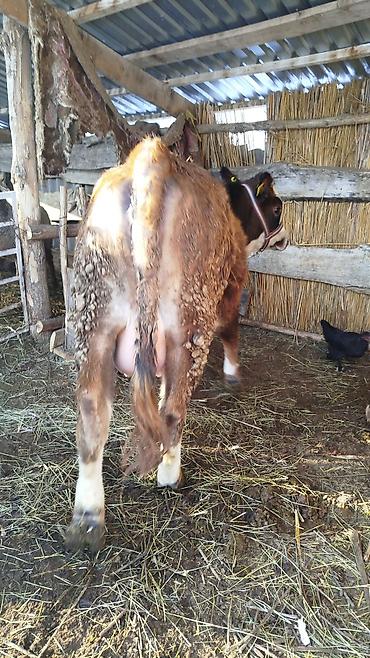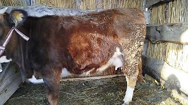 - Порода/тип: помесная (молочно-мясного типа), масть буро-рыжая с белыми отметинами.