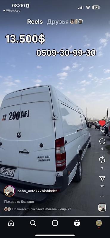 Mercedes-Benz Sprinter (длинная база, высокий крыша) - Тип: пассажирский/грузопассажирский микроавтобус - Кузов: удлиненный, высокая крыша, боковая сдвижная дверь, распашные задние двери - Цвет: б...