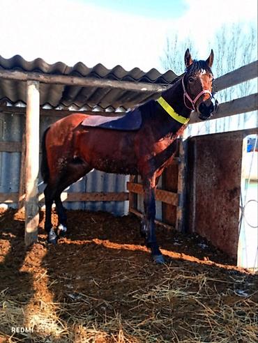 Лошадь верховая, гнедая масть.