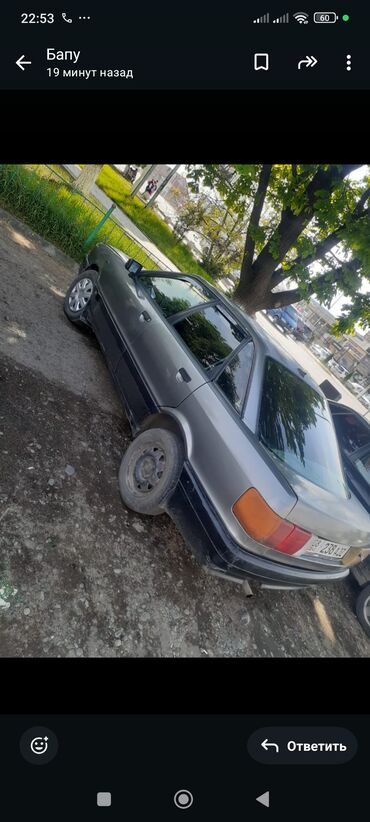 Audi 100 C3 (седан, серебристый) Ходовка 5+ новый резина ❄️ мотор Коробка жакшы Ключевые особенности: - Кузов: 4-дверный седан, классическая «аэродинамическая» форма C3, серебристый цвет, черные м...