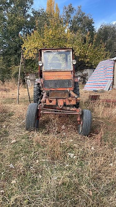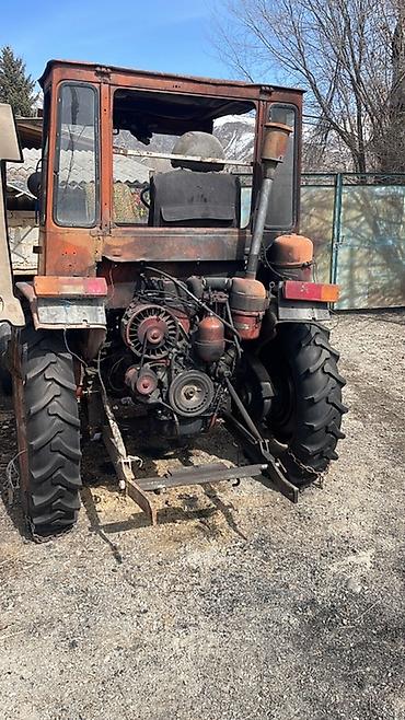 Трактор колесный, кабина с остеклением, задний ведущий мост на сельхозрезине. Установлен дизельный двигатель (рядный), навесное расположено сзади: трехточечная навеска, задние фонари/сигналы, выхлоп выведен вверх. Передняя часть рамы удлиненная, с рулевыми колесами автомобильного типа; предусмотрено место под переднюю навеску/оборудование. В кабине – рулевое колесо, сиденье, стеклоочиститель. Подходит для переделок и использования как база под мини‑погрузчик, мотоблокировку с навесным, самодельный вездеход или хозяйственные работы: культивация, окучивание, транспортировка прицепа. Возможна установка/доработка гидравлики и навесного инвентаря благодаря открытой раме и доступному моторному отсеку.
