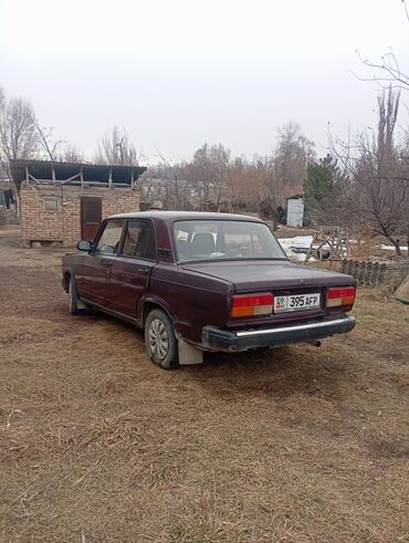ВАЗ 2107, седан, цвет бордовый. Классическая компоновка: задний привод, механическая коробка передач. Салон тканевый, передние сиденья с накидками, торпедо стандартное «семёрки», трёхспицевый руль, аналоговая приборная панель. Электростеклоподъёмников нет, ручные. Печка, вентиляция, прикуриватель/розетка. Полностью остекление, все двери на месте, штатные бамперы спереди и сзади, наружные зеркала классические.