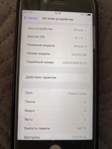 IPhone 8, 256 ГБ Характеристики и детали по фото: - Модель: iPhone 8 (указано в «Об этом устройстве») - Память: 256 ГБ - iOS: 16.7.12 - Цвет корпуса: черный/space gray (стеклянная задняя крышка с ...