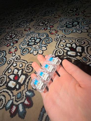 - 4 независимые прозрачные свичи с синими штоками и колпачками — приятный кликающий звук и упругий отклик.