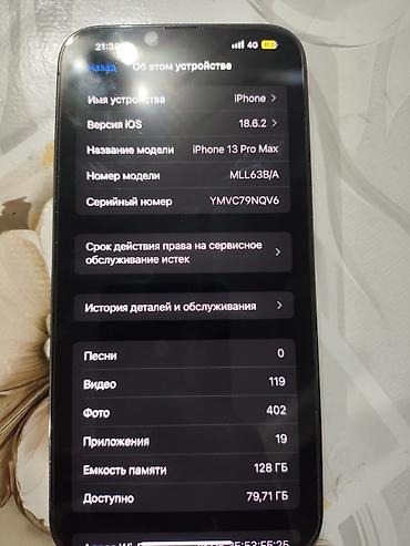 IPhone 13 Pro Max, 128 ГБ, модель MLL63B/A, серийный номер YMVC79NQV6. Цвет – графит.