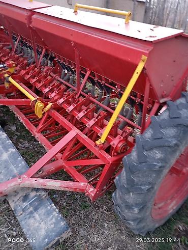 Сельскохозяйственная сеялка (прицепная, механическая) - Назначение: рядовой посев зерновых и бобовых культур с одновременным внесением семян по сошникам. - Конструкция: бункер для семян с верхними...