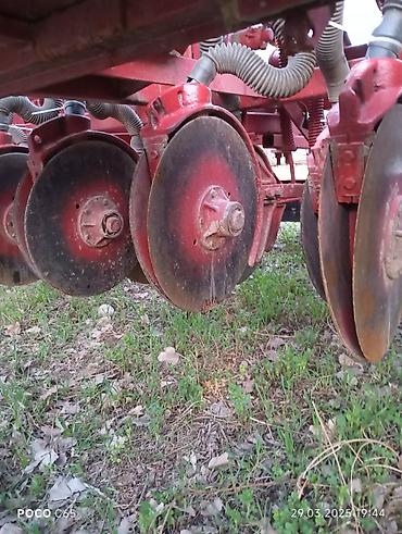 Срочно Сеялка для посева различных культур в сельском хозяйстве. Оборудование оснащено бункером для семян и системой распределения, которая направляет семена через гибкие шланги к высевающим диска...
