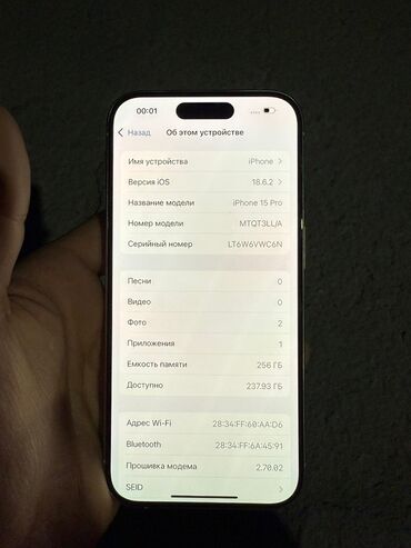- Память: 256 ГБ, доступно ~237.93 ГБ