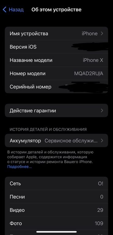- Модель: iPhone X (номер модели MQAD2RU/A)