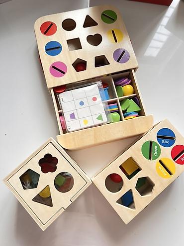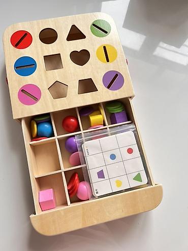 - Сортировка по форме и цвету, сопоставление с отверстиями.