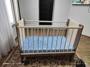Детская кроватка-комод трансформер - Формат: кроватка с продольными рейками и высоким изголовьем, объединена с боковым комодом и пеленальной поверхностью. - Материалы: ЛДСП/МДФ, комбинированная от...