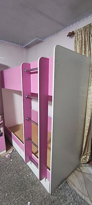 Двухъярусная детская кровать, Б/у, ЛДСП, цвет - Розовый