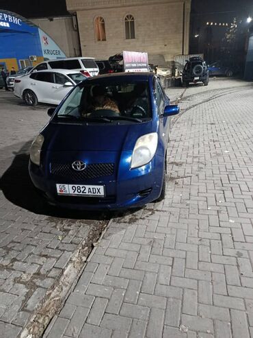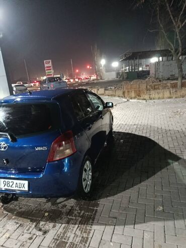 Toyota Yaris хэтчбек, синий цвет кузова. Компактный городской автомобиль с 5 дверями и экономичным двигателем.