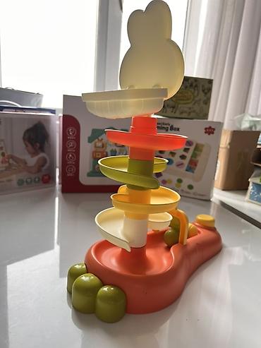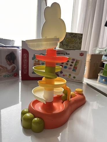 - Яркий многоуровневый трек-спираль для катания шариков.