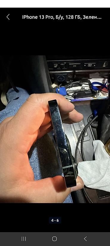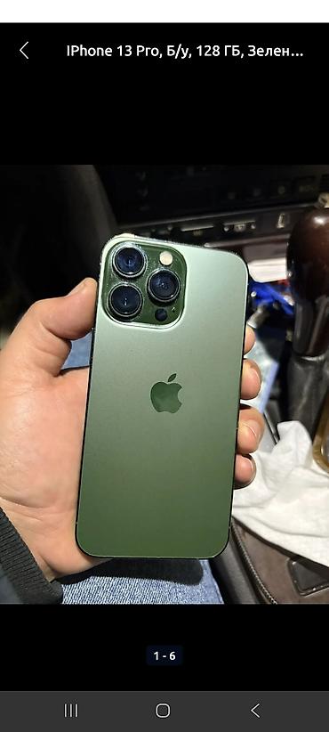 Apple iPhone (серия 13 Pro), зелёный цвет. Фейс нет экран менян на под оригинал Трутон есть 256 80% Минусы экран алмашкан Болду башка минус жок. Идеал коробки нету купили привозной