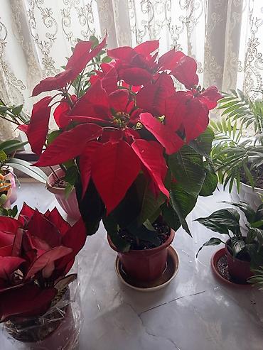 - Пуансеттия (молочай прекраснейший): яркие красные прицветники над зелёной листвой, эффектный праздничный акцент. Предпочитает светлое место, умерив полив, без переувлажнения.