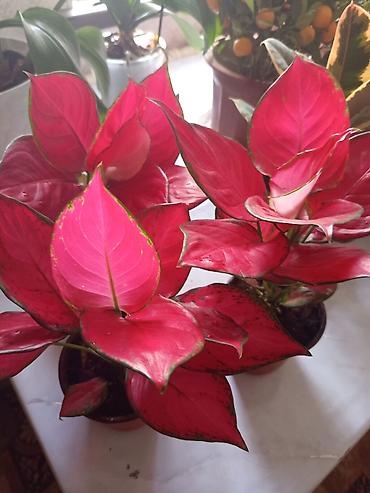 - Агалонема краснолистная (Aglaonema): густые розово‑малиновые листья с зелёной окантовкой и точечной мозаикой. Компактная теневыносливая культура, идеальна для интерьера и офисного пространства.