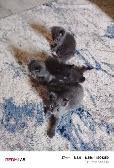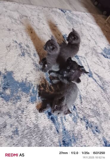 - Глаза серо‑голубые, ушки стоячие, хвостики пушистые.