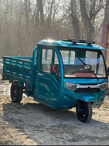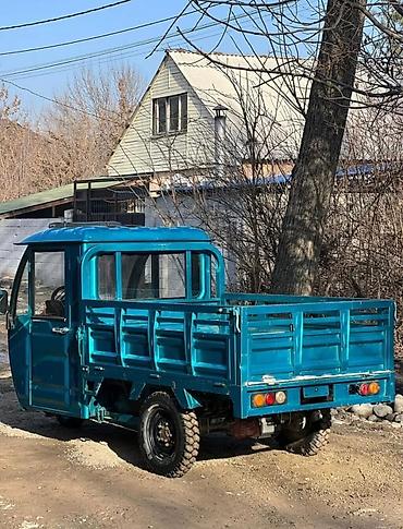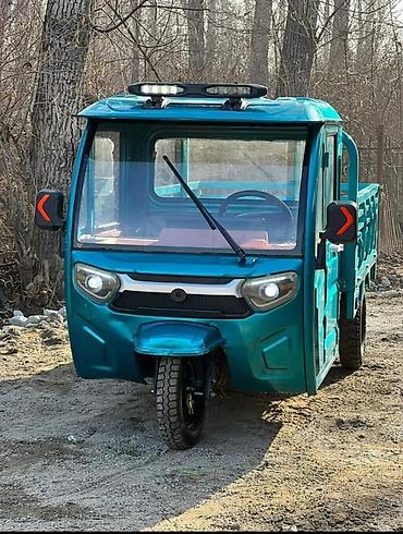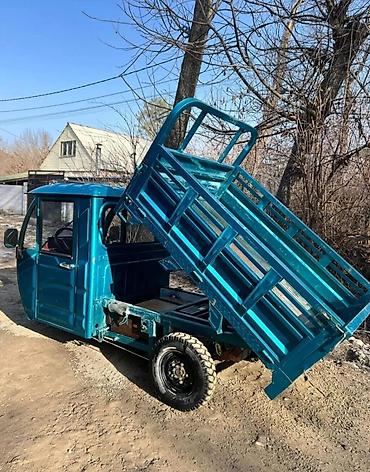 - Компактный трёхколёсный грузовик в металлической кабине с дверями и стеклоподъёмниками-вертушками.