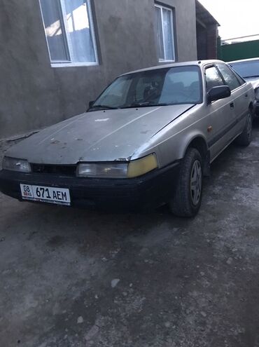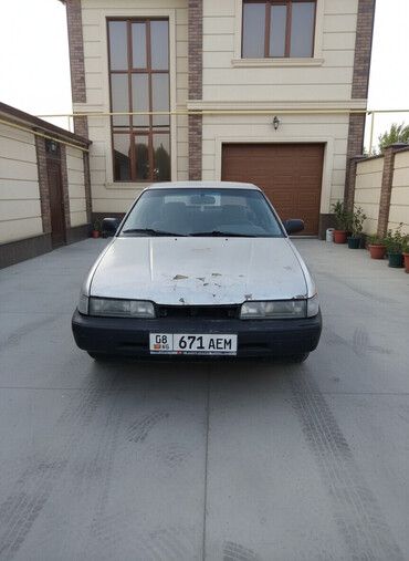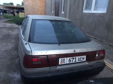 Mazda 626 (GF), седан, серебристый цвет. Киргизские номера 08 KG, госномер 671 AEM.