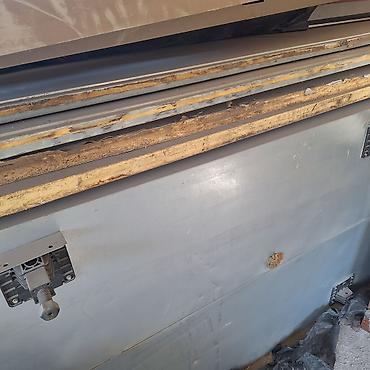 - Особенности: присутствуют панели различных размеров и толщин; часть кромок с остатками герметика/монтажной пены; встречаются вырезы под вентканал/вытяжной блок и технологические элементы.