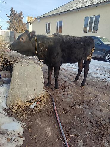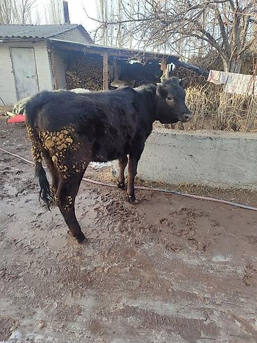 Бык молодняк, окрас черный. Небольшие рога, бирка в ухе. На фото — в хлеву и загоне, на привязи в недоуздке. Кормление зеленой массой/сеном. Подходит для откорма на мясо или дальнейшего содержания ...