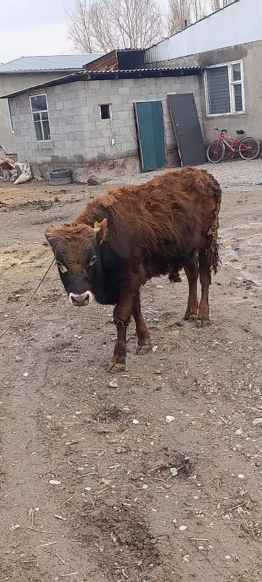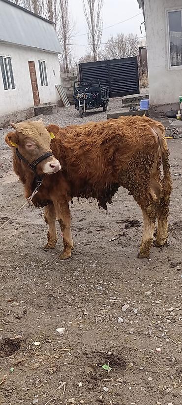 Телята мясного направления - Группа телят, содержатся в крытом помещении на привязи у кормушки. - Окрас разный: чёрный, бурый, светло‑рыжий. - Возраст по виду — молодняк, активные, упитанные. - Уш...