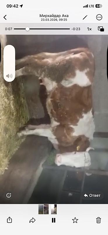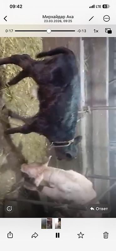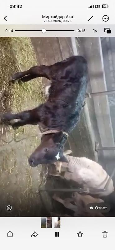 Щвиц первотелка 7,5 месяцев стельная. - Тип: домашний крупный рогатый скот, корова молочного/мясного направления. - Окрас: темно-бурая с более светлыми участками. - Рога: короткие. - Хвост длинный...