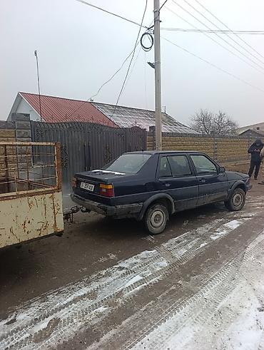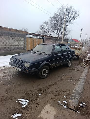 Volkswagen Jetta (седан), ориентировочно конец 1989‑х – начало 1990‑х годов. Темно‑синий цвет, 4 двери, передний привод. Компоновка классическая для модели: продольный капот, прямоугольные фары, решетка с эмблемой VW, бампера с защитными молдингами. Колеса R13–R14 со штампованными дисками.