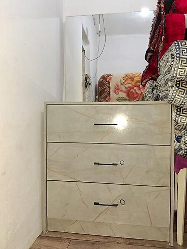 - Комод с тремя глубокими выдвижными ящиками и большим зеркалом.