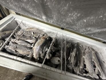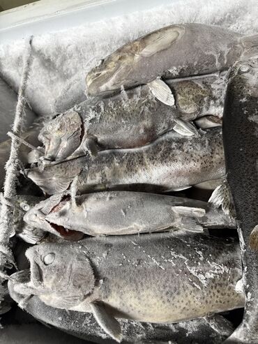 - Ассортимент: несколько видов пресноводной рыбы, преобладает радужная форель (видны характерные пятна по бокам). Возможны другие виды схожего размера/формы.