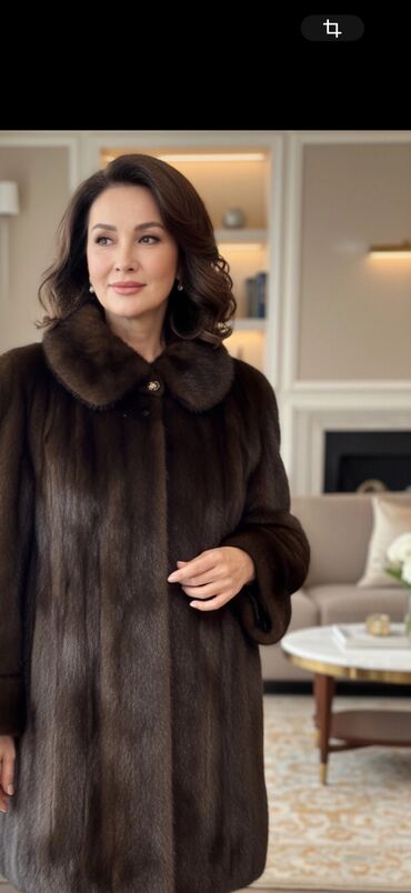 Шуба из норки, классический чуть ниже колена. Цвет — темный (глубокий шоколад/чёрный с мягким переливом). Мягкий натуральный ворс с равномерным блеском. Особенности: - Полукруглый воротник-стойка/...