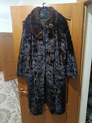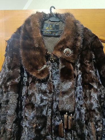 Женская шуба из натурального меха норки, темно-шоколадного оттенка.