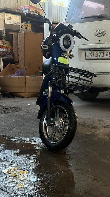 Подходит для городских поездок, доставки и повседневных дел. Тихий ход, низкие эксплуатационные затраты, возможность перевозки мелких грузов в корзине и кофре. Цвет — темно‑синий.