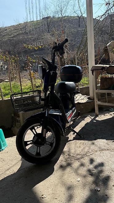 Электроскутер (электровелосипед) городского типа с сиденьем и задним багажником Характеристики и оснащение: - Электропривод заднего колеса (мотор‑колесо), дисковые тормоза спереди и сзади. - Двухп...