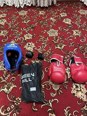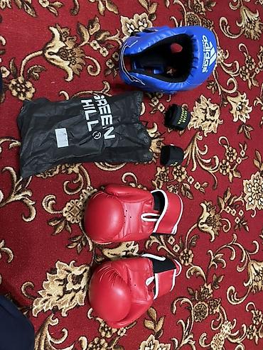 Подходит для тренировок по боксу и единоборствам: защита головы, фиксация кистей и амортизация ударов. Перчатки с вентиляционными отверстиями на ладони, шлем с мягким наполнителем и вырезом под уши для лучшей слышимости. Комплект удобно брать с собой в зал благодаря мешку. Размеры не указаны на фото.