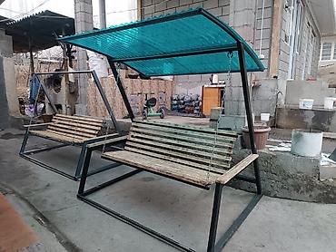 Кованые садовые качели с навесом от 20т до 35 тыс.сом. Удобные красивые эксклюзив... принимаю заказ на качели,скамейки,мангалыбалансиры,карусели все связанное детьми,садиком. данная модель 32т уст...