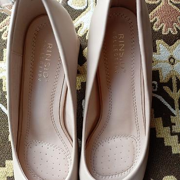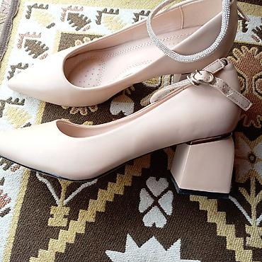 Бежевые женские туфли-лодочки на устойчивом каблуке. (В идеальном состоянии) - Материал верха: лакированная искусственная кожа с глянцевым блеском. - Цвет: нюд/беж. - Носок: округлый. - Каблук: ши...