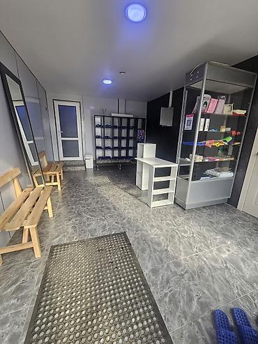 - Уютная приемная зона: скамьи для ожидания, большое зеркало, витрина с банными аксессуарами (веники, шапки, мочалки, косметика), стойка администратора.