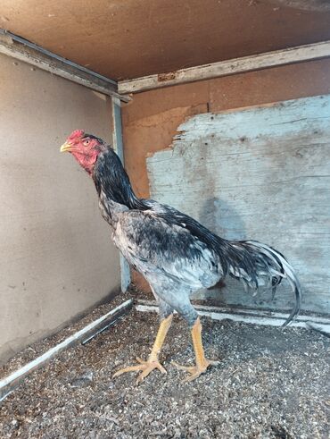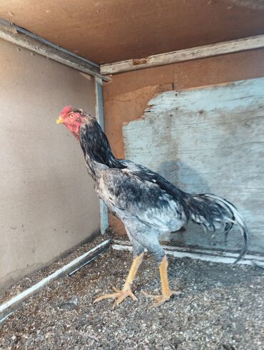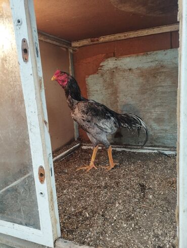 Тулок 1.5 жаш, бою бийик, баасы 7000сом Петух бойцовой породы (похож на азиль/шамо) Окрас — чёрно-рыжий с зелёным отливом на хвосте и крыльях. Гребень листовидный, лицо красное, клюв мощный. Ноги ж...