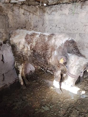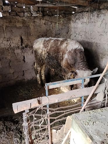 Бычок (молодняк КРС) - Порода: помесь, масть пестрая (рыже-белая). - Возраст: молодой (любопытный, активный). - Содержание: стойловое, на привязи; находится в тёплом сарае. - Корма: сено, солома; ...