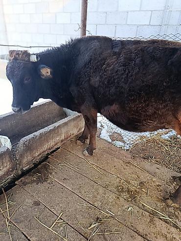 Телёнок чёрно-белой масти (порода типа голштин/чёрно-пёстрая). Содержится в тёплом кирпичном хлеву, на подстилке из сена. Активный, на крепких ногах, аккуратная голова, ровная спина. Уши биркованны...