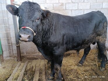 Бык чёрного окраса, рогатый, на привязи, содержится в отдельном стойле. Крупный, широкая спина и грудь, крепкий костяк, ровные конечности. Кожа и шерсть тёмные, плотные. Уши с бирками. Спокойный ха...