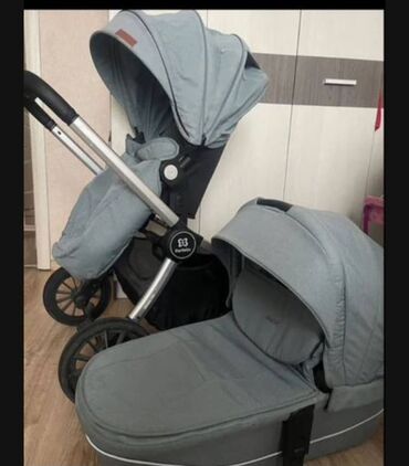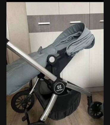 Коляска-трансформер 3 в 1 FONDIESS (серый цвет) Комплектация: - прогулочный блок с капюшоном и бампером - люлька для новорождённого с матрасиком и накидкой - автокресло-переноска со съёмным капюшо...