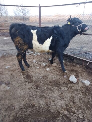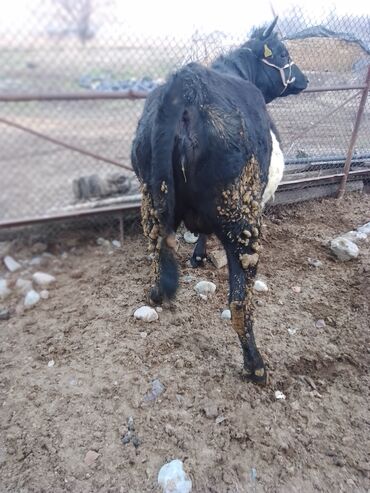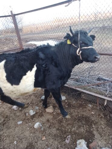 Коровa молочного направления. Особенности: - Масть: черная с белыми отметинами на ногах и брюхе. - Рога, бирки на ушах (идентификационный номер виден на фото). - Подвязь/недоуздок для выгула и фик...