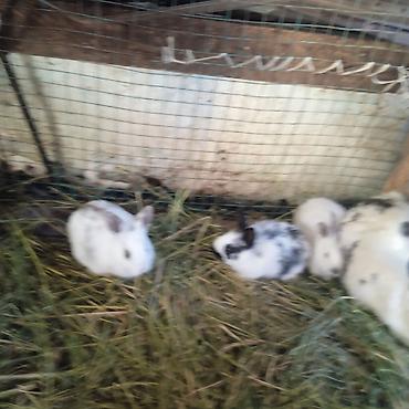 Кролики молодые, разного окраса (белые, пятнистые, серые, черные). Содержатся на натуральном рационе: сено и овощи (морковь). Подходят для разведения и как домашние питомцы. Спокойные, активные, ру...
